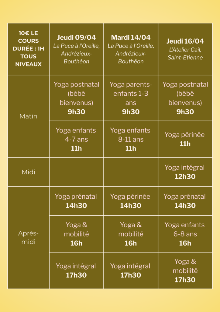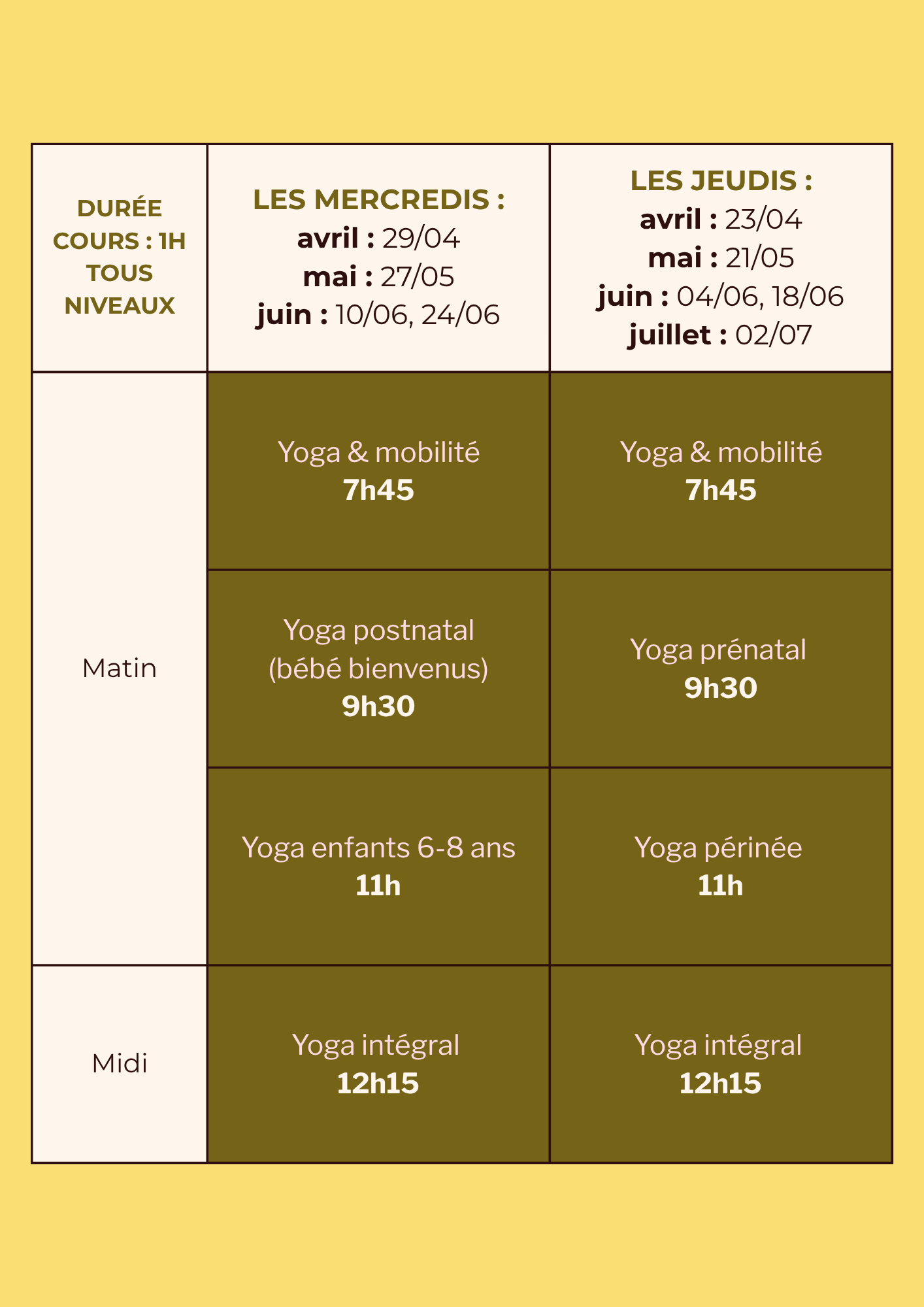 - enchaînement de postures dynamique ou doux adapté selon l’énergie de l’instant.